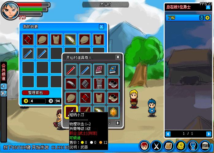 进入游戏后,记得先把装备拿上。遇敌采用的是"踩地雷"方式。1级只能普通攻击,练到2级后可以去道具商人地方买技能书学习,武士的超重击,法师的暴炎术,刺客的速刃。法师还有本5级可以学的元神分离。而其他2个职业却没有对应的技能: 人物死亡会掉本身经验的10%,比如,你只有10点经验,那么,死1次就掉1点,300点的话,死掉要掉30点。每升1级可得5点属性点!可以自由分配!