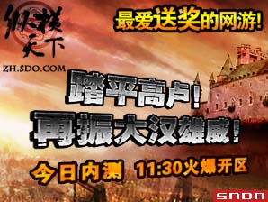一流的游戏,超流的奖品,《纵横天下》诚邀广大**玩家进入新服体验新概念网游的独特乐趣。