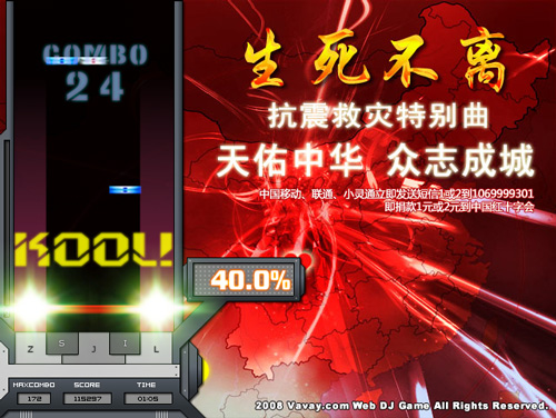 《MY DJ》是国内着名音乐游戏网“彩风”中的管理员与玩家协作开发的一款Web音乐类游戏,游戏目前尚无商业化打算,所以希望喜欢音乐游戏的玩家们多多支持一下此游戏,并且支持他们继续开发下去,做出更加完美的功能。