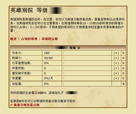 当你修建了英雄别院(为此你需要建造了望塔并升级建筑院到3级),就可以调整英雄属性、查看拥有的宝物和绿洲列表。