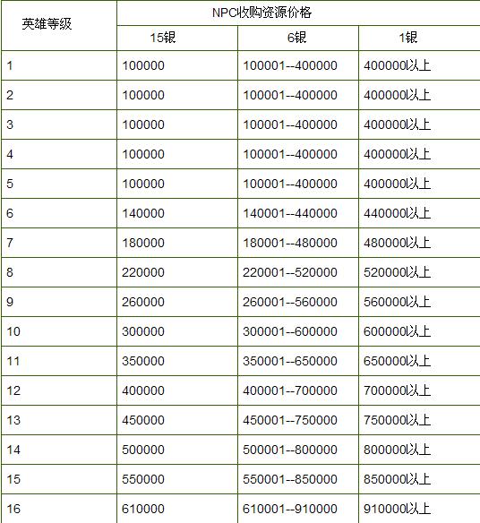 为抑制通货膨胀,打击市场垄断,NPC资源收购价将启动浮动机制,目前的浮动价格如下: