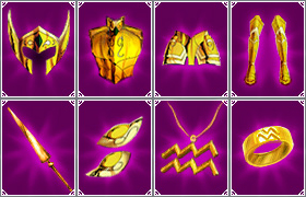 在“军团时代”资料片中,圣斗士星矢这个童年故事也成为该资料片中亮点之一。十二套星座套装是依照圣斗士的黄金战甲所设计:天马、天蝎等等每一套都设计的非常精美。一辉、星矢、舜他们穿上他们曾经的战甲可以勾起您对童年故事的重温。