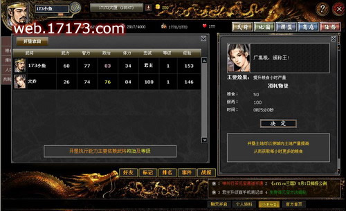 《office三国》的游汲取《三国志》系统游戏的经典模式,去除了花哨的建设制约条件与资源分类,而是通过内政的命令模式,安排手下武将进行一系列的操作,如开垦,商业,训练等等。通过这些操作,来进行对地市的提升。