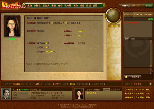 《商业大亨ONLINE》是一款大型模拟经营类网页游戏。玩家将扮演一位创业者,从零开始,在“自由城”中拼搏。通过努力,不断的扩大自己的事业版图与社会地位,直至成为声名显赫的社会名流,最终建立一个强大的商业帝国。在这里,可以实现您的梦想,成就超凡伟业,构建出自己心中的商业王国!
