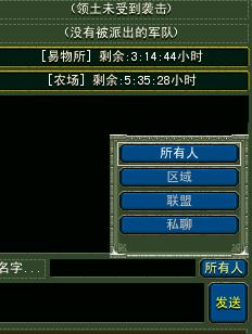 更新后的《领主OL》客户端由原来的640*480变更为900*480,左侧部分与原来的客户端基本相同,只是在右侧外置了状态信息和聊天频道。在状态信息里,一目了然领土受攻击信息、军队派出信息和建筑及资源的升级信息,下面的聊天区域可以看到即时的聊天信息,根据不同聊天频道区分字的颜色,非常实用。