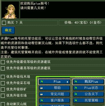 新增的plus帐号购买,可通过界面用宝石购买plus帐号,具体结算为购买7天花费40宝石。