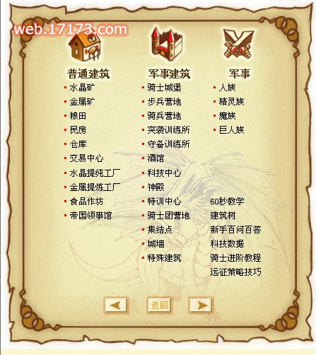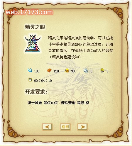 自前**始,就有着各个种族的特色建筑,不过,当时只看到了巨人族的石阵,现在,完善的特色建筑终于都已经浮出了水面,例如精灵族的精灵之眼,全面提高精灵族的移动速度。又好比神族的光明神殿,全面提高部队的攻击力,更有提高建筑速度的工程学院,当然这个可是矮人族的专利了咯。