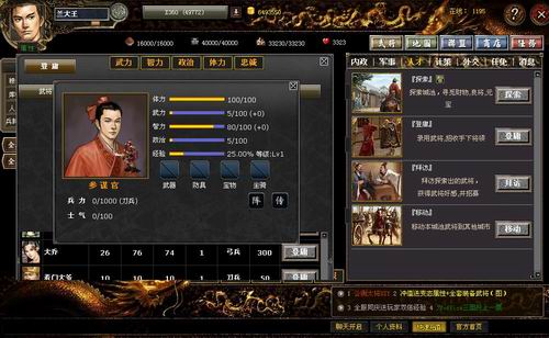为了帮助玩家轻松渡过新手期,游戏特别设定了多位物美价廉、堪称全游戏性价比最高的武将——“新人辅佐官”、“参谋官”、“内政官”、“武斗官”,这些武将的武力、智力、**三项属性值都很出色,售价也仅是象征性的100元宝,虽然单项数值不及周瑜、曹操、诸葛亮等名将,但与同等价位的武将相比,却是综合能力最高的武将,使用系统赠送的元宝即可轻松招募。有了这些新人辅佐官,新手玩家不再彷徨无助、迷茫无措,必将在《office三国》迈出坚定踏实、步履轻松的第一步。