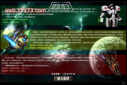 游戏的登录界面虽然套用了《星际》游戏的界面,采用三方对战的图片开启了这一场在星际中发生的战争。