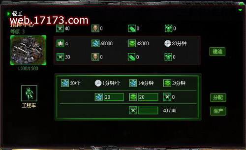 与其他战略游戏区别的在于游戏中的资源收集是要玩家们自己去分配的。点击自己的主基地,就会看到在主界面中可以进行资源开采的分配,依然要先通过主基地生产最初等的工人后,才能够进行分配,千万不要忘记哦。不然就没有资源收集了。(可怜小编第一次玩的游戏就是忘了分配了,结果没收到任何的资源,可怜啊。)