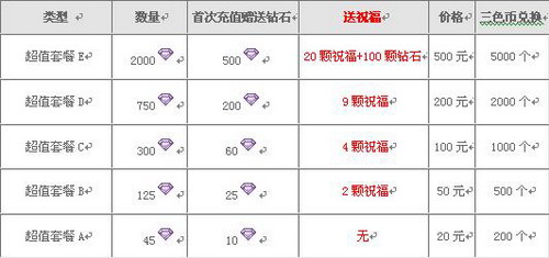 1. 玩家在活动期间内购买钻石套餐可额外获得“祝福宝石”奖励,此活动玩家可重复参与,多买多送。
