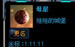 更有幸运玩家在开出母星的同时得到了一个当日最幸运的坐标“1:11:11”成为了光棍节的光棍王,根据笔者与该玩家的一些沟通中了解到,他对星战类游戏很有兴趣,是最早申请激活码成功进入游戏的玩家之一,另外他个人也不是个光棍,显然从他的星球名字中不难看出是个即幸福又幸运的玩家。也同样祝福所有的测试玩家都能像他一样幸运,幸福。