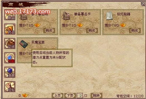 虽然游戏还只是进行相关的封测,但是已经开放了相关的收费方式。依然是道具收费的方式。提供商场道具的形式,向玩家销售部分比较好的道具,让玩家能够更加体验到《武林》带来的乐趣。其中还提供专门的洗点道具哦!玩家如果加错属性点了或是经络点了,都可以通过这个道具洗点哦。