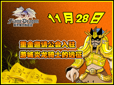 活动内容:在活动时间内在游城网论坛炎龙骑士的远征公会事务版块发表主题帖宣布入驻“游城网炎龙骑士的远征”的公会,并完成相关验证过程的,将会获得游城网公会联盟的大力支持。