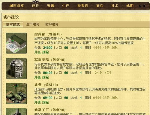 游戏发展进程完全遵循以下过程,城市基础建设→发展科技→招募人员→发动战争。