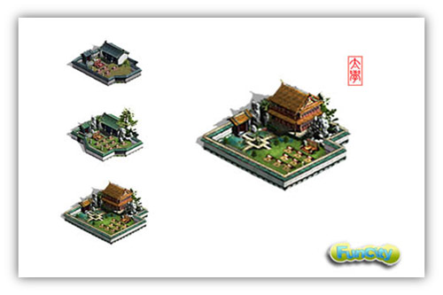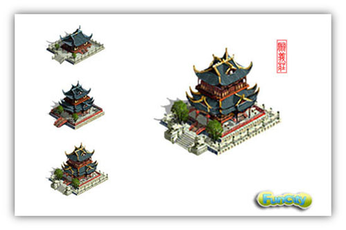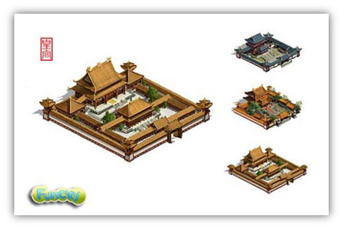 与其它游戏的复杂命令不同,《征战天下》奉行的却是“精兵减政”策略,让玩家从繁琐、零碎的事务中解放出来,从而更轻易的掌控全局。游戏系统如何,我们不得而知,象建筑等外在的东西,却可略见一斑。建筑,是思想、行为的凝结体和外在表现,《征战天下》与众不同的玩法,自然要在建筑上体现出那种高效、务实的为政作风。今天,官方带来了游戏中最具代表性的四款建筑原画,一起为大家解读建筑背后的游戏风格。
