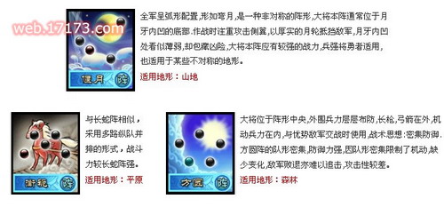 从前秦时代开始,中国军队就有了阵型的概念,诸葛武侯的八阵图更是把五行相克相生的玄妙法则引入了战阵之中。大军布阵,如能配合地形,布阵得当,不但能够大量杀伤敌军,还能减少自军受到的伤害。最为大家熟悉的长蛇阵不就很简单的说明了这点 :敌军击蛇头,则尾攻之;敌军击蛇尾,则头攻之;敌军击蛇腹,则头尾围而攻之。《乱世》之中可布之阵形有:车悬阵、鱼鳞阵等等。
