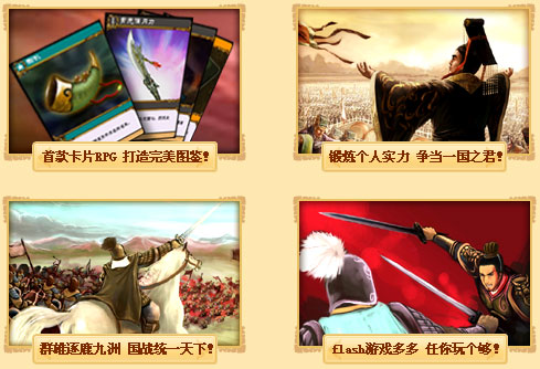 您沉迷于春秋战国那段纷争又神秘的历史吗?您喜欢寻史探秘、斩妖除魔的RPG吗?您钟情于指掌天下、成就万世霸业的王者游戏吗?历史迷、游戏迷、战争狂人、世外商人、小虾、大虾、老虾,无论您是谁,只需打开浏览器,都能投入这场旷世大战,成为一统天下的霸者,体验不一样的网页游戏!