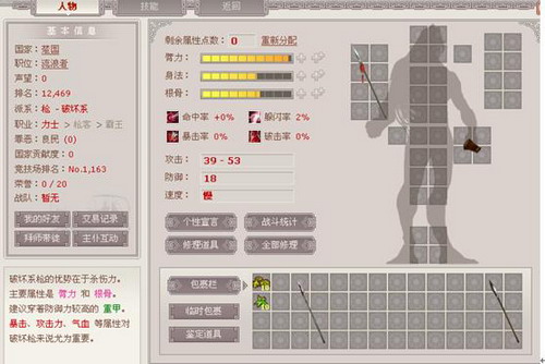 角色每升一级都可以获得1点自由属性点,可以加在臂力(可以提升人物的攻击力)、身法(可以提升人物的攻击力和躲闪率)、根骨(可以提升人物的气血和内息上限)上。有些装备有属性要求,比如绿装,如果属性达不到是装备不了装备的。
