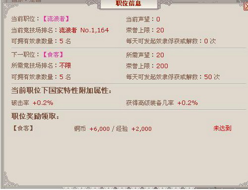 《武林英雄》的任务系统非常丰富,除了新手任务外,还有其他日常任务,不管是新手,还是老玩家,都可以通过任务来获取不错的任务奖励。游戏中还提供了竞技场,奴隶市场功能,通过竞技场可以和别的玩家进行比试,不过输了的话可能会沦为别人的奴隶,这就是奴隶市场所在了。