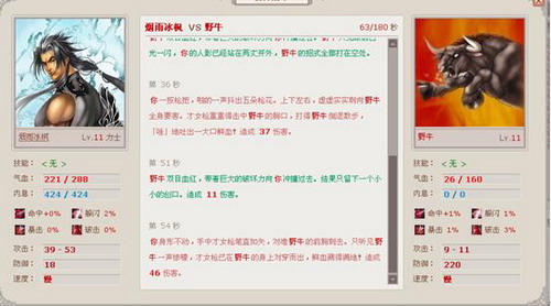 《武林英雄》里的战斗系统可以分为两种,一种是我们常用的传统打怪模式,即文字式回合制战斗模式,在这个模式里,玩家只能在限定的时间里,对怪物进行相应的格斗,虽然看不到战斗画面,但是却能通过相应的文字描述,自行想像战斗画面。