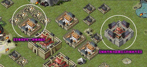 当然,一块顶级资源田也只能为五个玩家占领加成,而窥视它的又岂止五为玩家呢?玩家们往往为占领一块顶级资源田而兵戎相间,最重要的还是要先保护自己,再取得胜利。玩家启用“城墙”的“城池外观”对自身城池的防御加成,同时启用“城池外观”后的城池以独特的外墙面区别与其它三级城池,让你的皇城更为气派!