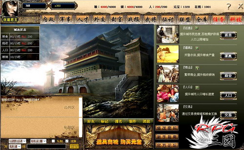 结合经营策略与角色扮演的《RPG三国》,将第一次在三国类的网页游戏把武将提升成为真正的主角!高等级和高属性的武将,在战斗中会和低级武将有明显的差异!绝对可以做到一骑当千的效果!