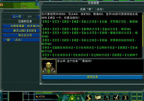 自2009年1月20日中午12:00至2月9日中午12:00,全区全服的玩家登陆游戏,就可以立即接到兑换至宝的系列任务。