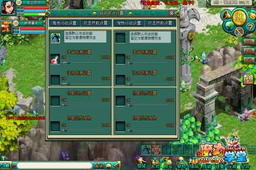《魔力学堂》一直推崇健康游戏生活,致力于打造完美的休闲无端网游。不知道你有没有注意过魔力的挂机系统呢?没有复杂的按键和设置,一切都简单“傻瓜”到堪称经典。将技能、回复药剂及相关百分率设定好,再在战斗场景中选择自动战斗,99回合的挂机时间就正式开始啦!