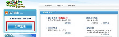 2、进入充值中心后必需先进行帐号登陆,登陆成功的帐号才能进行“黄金贵宾卡”充值。