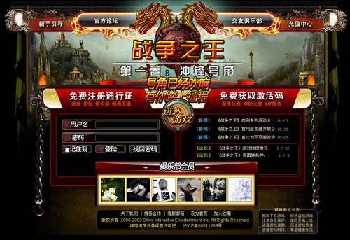 2009年2月10日上午11:00:00,《战争之王》将正式开启不删档内测服务器…