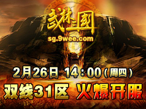 2009年《武林三国》以质取胜,通天城战开路先指,全新双线31区今日14:00正式开启!开服精彩活动等你加入!在龙抬头的今日,玩一玩武林三国,游戏升级更顺旺噢。