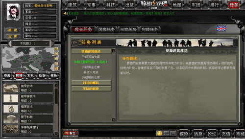 除此之外,《WEB枪炮玫瑰》拥有强大的任务系统。贴心的成长任务会伴随玩家的整个成长过程,让您轻松渡过在其他网页游戏中略显艰难的准备期;而独特的战斗系统,各势力间的独有的武器装备,不管是攻城掠地,还是行军作战,兵种间的配合将使战争充满变数。是否还记得兄弟连的硝烟战火,是否还记得拯救瑞恩的枪林弹雨,是否还记得集结号的热血澎湃。当激战过后看着那一份份扣人心弦的战报时,眼前仿佛回到正在进行的一场场硝烟弥漫的战争……