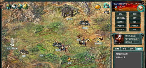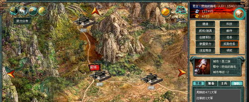 郡城地图:在世界地图上的每座郡城,都包含自己的10座卫城。玩家若想攻击郡城,需从这些卫城发兵。也就是说,玩家首先需要占领这些卫城。进攻卫城难度较低,且在前期能给予玩家较丰厚的奖励。攻占卫城是玩家通向全国一统的必经之路。