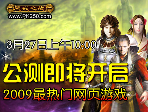 《魔戒之战》官方3月20日正式宣布:由完美风暴研发,完美风暴件科技有限公司运营的网页游戏《魔戒之战》将于2009年3月27日(星期五)上午10时正式公测!