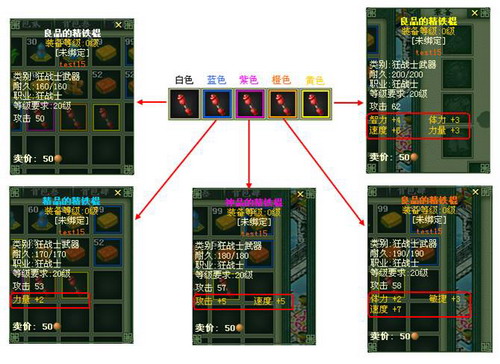 (2)附加属性:根据装备的成色,获得附加属性。成色越高,可获得的附加属性数量越多。