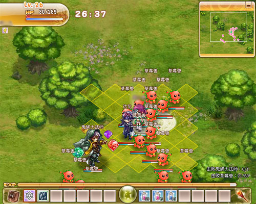 在“伪善的恶兽”这关任务中,美眉们可以和魔族英雄——大帅哥达伦并肩作战,在30分钟有限的时间里,杀死60只被鬼族大法师作为宠物眷养的草莓兽,同时,那可打扮得花哩胡哨的鬼族大法师也不能放过,要坚决地对他予以重击,把他杀死!