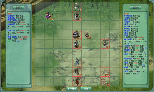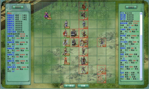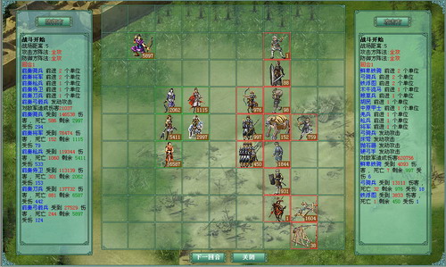 两军相遇后,系统会虚拟出一个9*9大小的战场,交战双方的军队会分别安置在两边。根据规定的战场规则进行移动和攻击,直到交战结束。而这个过程将以图形动画的形式完全重现在玩家们的面前。