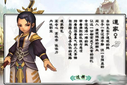 游戏创选人物界面:终极封测开放墨家、兵家、道家的男女性别。