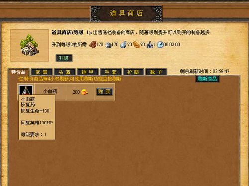 另外一大建筑“道具商店”并非战争型建筑,但是它却能直接解决玩家“有钱无处花”的烦恼,让玩家能够更合理的支配当前金币。道具商店出售能让英雄迅速回血的道具、英雄的装备以及武器,能让英雄战后能够快速恢复继续战斗,同时也不再需要头疼英雄“赤裸”上阵的问题。只要有金币,这一切都将不是问题!