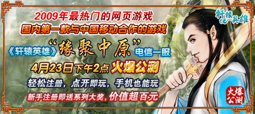 轩辕英雄网络 集RPG与策略游戏之大成,是2008年初推出的一款面向广大上班族的休闲型、益智型、知识型的WEB版即时战略最新网页游戏,本着弘扬传统文化,发扬爱国主义精神的原则,以中华传统文化作为游戏的背景,玩家在游戏中可与中华五千年文明中的数百名历史英雄一起战斗,体验冷兵器时代的血雨腥风,体验征服的快感,并从中体验到中华渊源流传的伟大文化。玩家无需安装任何程序,只需要IE浏览器,连接上国际互联网,那么您已经具备了进入此游戏的条件。现在请选择服务器,开始轩辕英雄之旅。