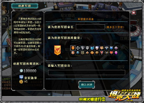 创建军团的玩家需要对自己的军团进行命名,并选择军团徽章,然后写下军团宣言。这些都填好后,就可以点击“确认创建”,军团就在此刻成立了!