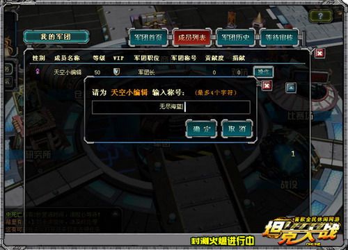 目前的军团还处于发展阶段,很快会增加更多使用的新内容给大家。不过早起的鸟儿有虫吃,喜欢和大家一起游戏的你当然会选择早点创建军团、加入军团。从现在开始,领导你的团员,加入《坦克大战online》的全民休闲洪流中吧!