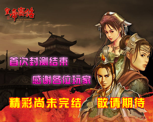 再次感谢您对《皇帝密诏》运营团队的理解和支持, 首次封测即将结束,但精彩尚未完结,《皇帝密诏》下一次测试正蓄势待发,让我们共同拭目以待吧!