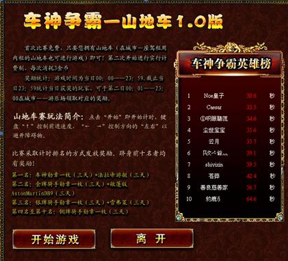 第三名:银牌骑手勋章一枚(三天)+雪弗莱(三天)