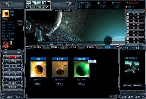 2009年备受媒体和广大玩家关注的星战类网页游戏《星际帝国》,已经成功打开了民族网游出口海外的神话之门。作为国内网页游戏征战世界市场的“拓荒者”,《星际帝国》的品质是无可质疑的。由网元网团队精心打造的《星际帝国》,着重强调游戏品质的加强。华丽的星战场面、精美别致的游戏画面、神秘的宇宙之迷,《星际帝国》使玩家们的征服欲望在这里尽情释放。浩瀚的宇宙场景、光芒万丈的日月星河、让人荡气回肠的万人星战,激情在每位《星际帝国》玩家之间传递!《星际帝国》也正是凭着这样卓越的品质,于2008年年底成功签约韩国NHN公司,并在日本正式上线运营,成为国内首款出口海外的网页游戏。
