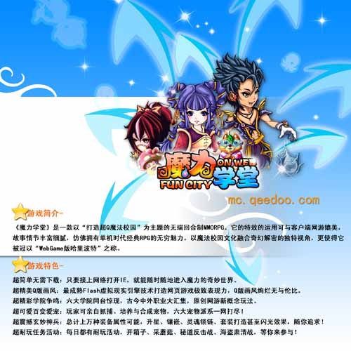 泛城科技创立于2006年8月,主要从事网游和**社区的开发运营,同时在创业融资、管理运营等领域,都有着良好的项目背景和创新意识。其首款超Q无端网游力作《魔力学堂》连创佳绩,被称为“WebGame版哈里波特”;即将推出的动态三国策略网游《征战天下》,更被誉为开创“无端策略网游次世代”巅峰之作。
