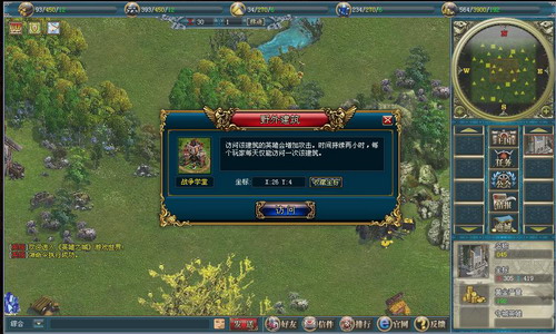 这些建筑分别是战争学堂、防御塔、启蒙之书、祈愿之庙。这四种建筑分别对应英雄的四种属性——也就是攻击、防御、知识、速度。每名英雄访问过一座建筑后,将获得两小时的BUFF(比如你的英雄访问战争学堂后,在两小时内会获得10%攻击的BUFF效果),别小看这10%哦!在初期也许还不觉得,但在游戏中后期,这10%很可能将决定战斗的结果呢!