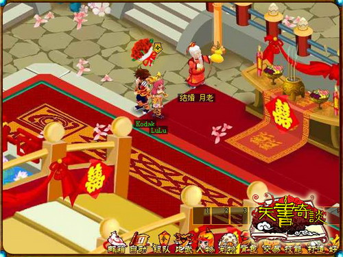 修真界,为生活增添了许多共同话题;更有幸福的玩家从网络情缘发展到在现实中踏上红毯,《天书奇谈》休闲温馨的游戏环境拉近了玩家心灵间的距离。