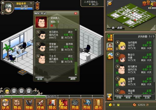 从“人才交流中心”中每个玩家都可以雇佣最多5位属于自己的武将,武将的品质决定武将的升级时专精点成长的程度,武将品质越高,升级时获得额外专精点的机会就越多。
